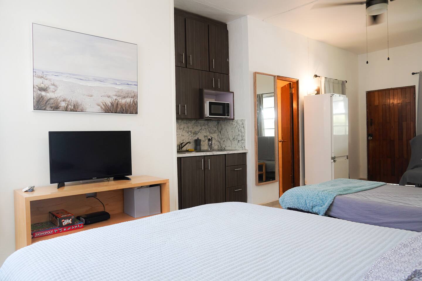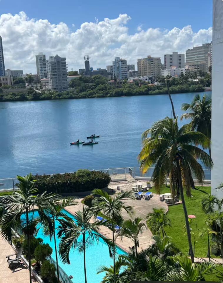 Welcome to our serene, seaside-inspired studio in the heart of Condado, one of Puerto Rico’s most desirable neighborhoods. Just steps from multiple beaches and moments from the luxurious Vanderbilt Hotel, you’ll be surrounded by vibrant dining , lively nightlife, beautiful lagoon views, and spacious garden/pool access. Only 10 minutes from SJU airport and a quick drive to Old San Juan, La Placita, and Ocean Park, this is the perfect location for a beachside retreat.